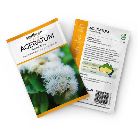 The dainty powder-puff blooms of Ageratum in white and soft shades of blue and pink are indispensable to any country-style flower garden. Sustainable gardeners who love a self-seeding informal meadow of mixed blooms should definitely include Ageratums in their seed selection. Meanwhile, Ageratums also lend themselves to formal flower gardens with the short varieties making excellent edging plants while the tall ones are good for planting towards the back of flowering borders.