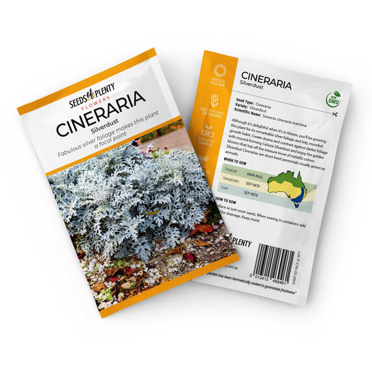 If your garden is a bit colour-starved in winter, or you’re looking for a winter pot plant you can grow yourself, Cinerarias offer a solution. The stocky plants have quite handsome foliage, and provided you don’t get an extreme frost, the next step is a dense bouquet of daisies, often with interesting biolour combinations. If you end up with more plants than your garden needs, plant your seedlings in 15cm (6”) pots to use as décor or gifts.