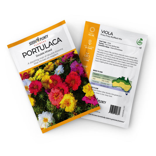 Portulacas are tiny powerhouses of colour, thriving in places where most flowers give up — think hot, dry, and sun-baked. With their succulent-like foliage and cheerful, tissue-paper blooms, Portulacas light up garden beds, pots, and rockeries with minimal fuss. This collection features a vibrant mix of varieties that open with the sun and close at dusk, attracting pollinators and delighting gardeners all summer long. Drought-tolerant and low-maintenance, they’re the perfect choice for busy gardeners who want beauty without the babysitting.