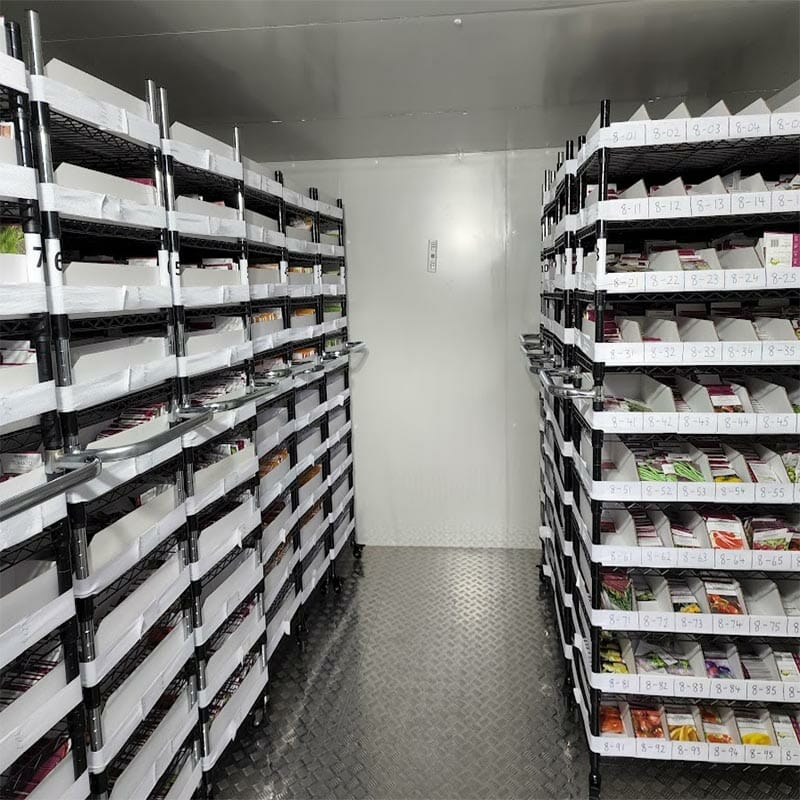 Our seed bank is located in a specially designed cool room that keeps seeds at a temperature of 5 degrees. Light and humidity are also excluded, telling our seeds that they shouldn’t break their dormancy just yet, no matter how impatient they may be to grow.