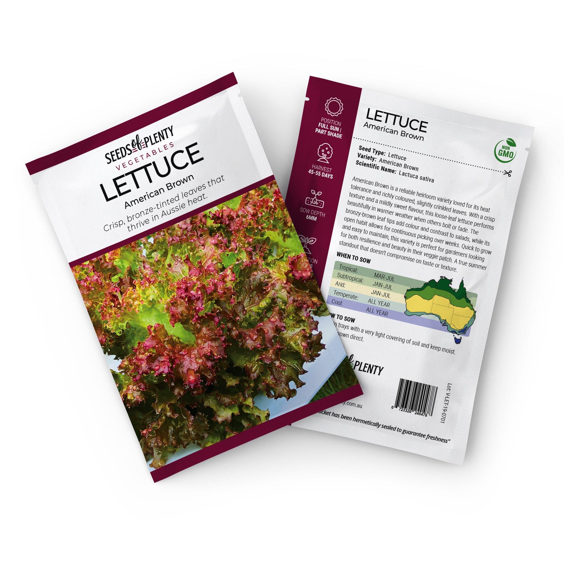 American Brown is a reliable heirloom variety loved for its heat tolerance and richly coloured, slightly crinkled leaves. With a crisp texture and a mildly sweet flavour, this loose-leaf lettuce performs beautifully in warmer weather when others bolt or fade. The bronzy-brown leaf tips add colour and contrast to salads, while its open habit allows for continuous picking over weeks. Quick to grow and easy to maintain, this variety is perfect for gardeners looking for both resilience and beauty in their veggie patch. A true summer standout that doesn't compromise on taste or texture.
